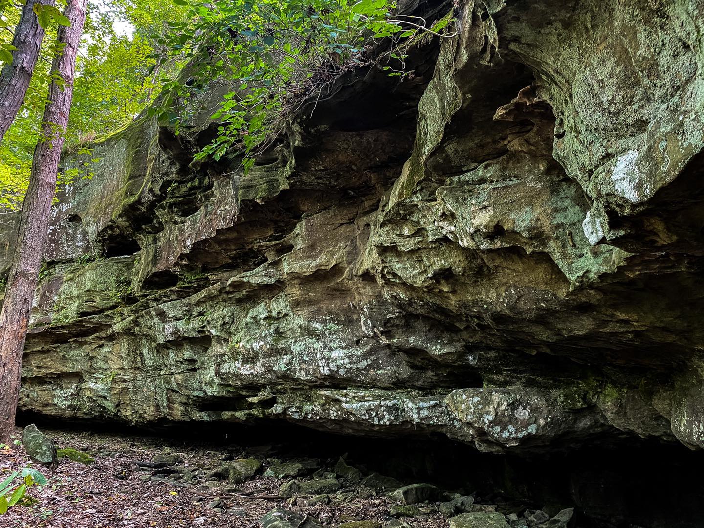 From the start of your hike, if it’s wet, you’ll enjoy Bork Falls at its finest. It’s an amazing waterfall that you should try to see at least once when it is running. The water has made a large pool and a nice cave shelter behind it. You can carefully go behind the waterfall for a cool experience, especially when it’s hot.