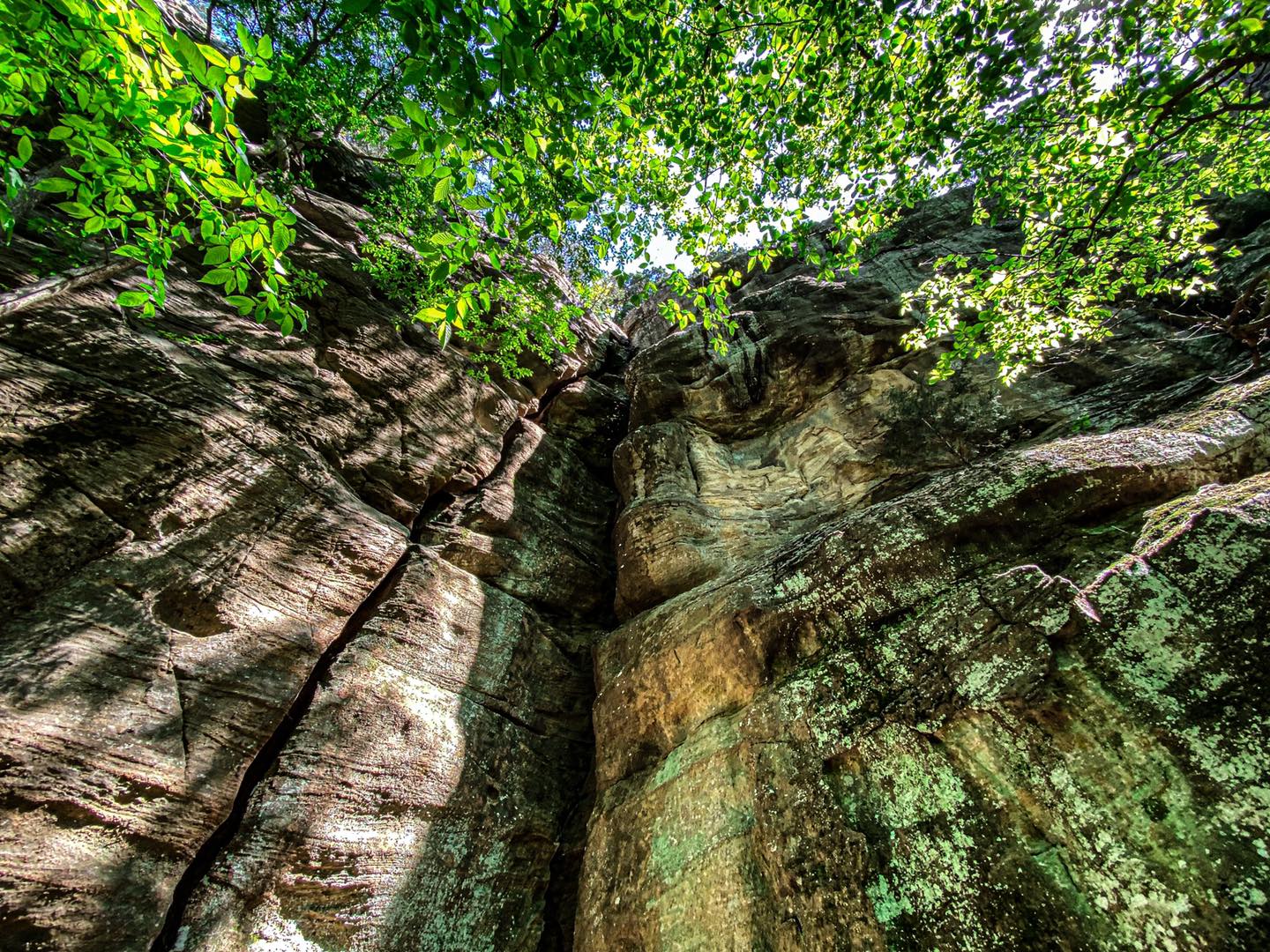 After you enjoy the overlook, you’ll hike down to the bottom of the Bluff and see where people climb. Depending on the time of the year, you might encounter some climbers. They’re all usually very friendly people to meet.