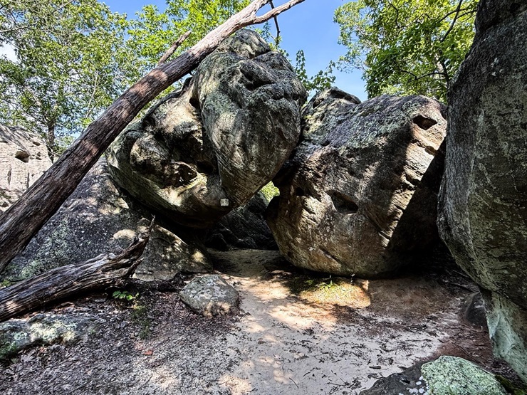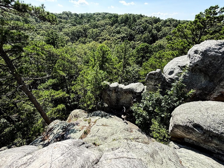 Along this trail, we saw amazing slot canyon-like passageways, all different sizes of some of the coolest bluffage we’ve seen, amazing natural windows that you can walk through, waterfall capabilities, and beautiful scenic overlooks. It was dry and hot when we went, so none of the waterfalls were flowing. This place to me was like the Garden of the Gods of Missouri.